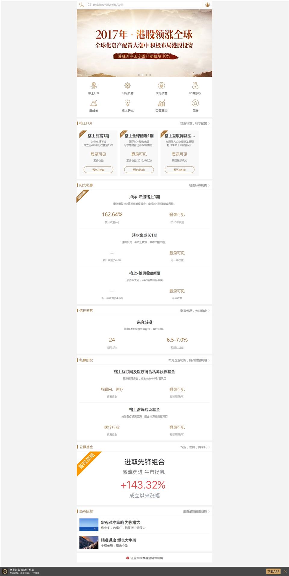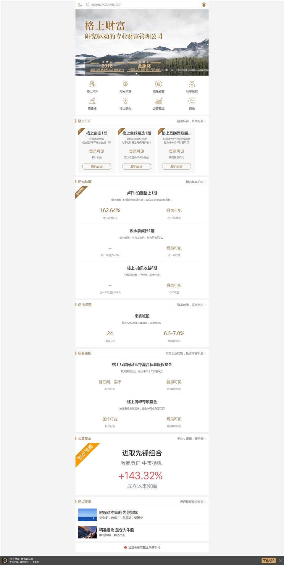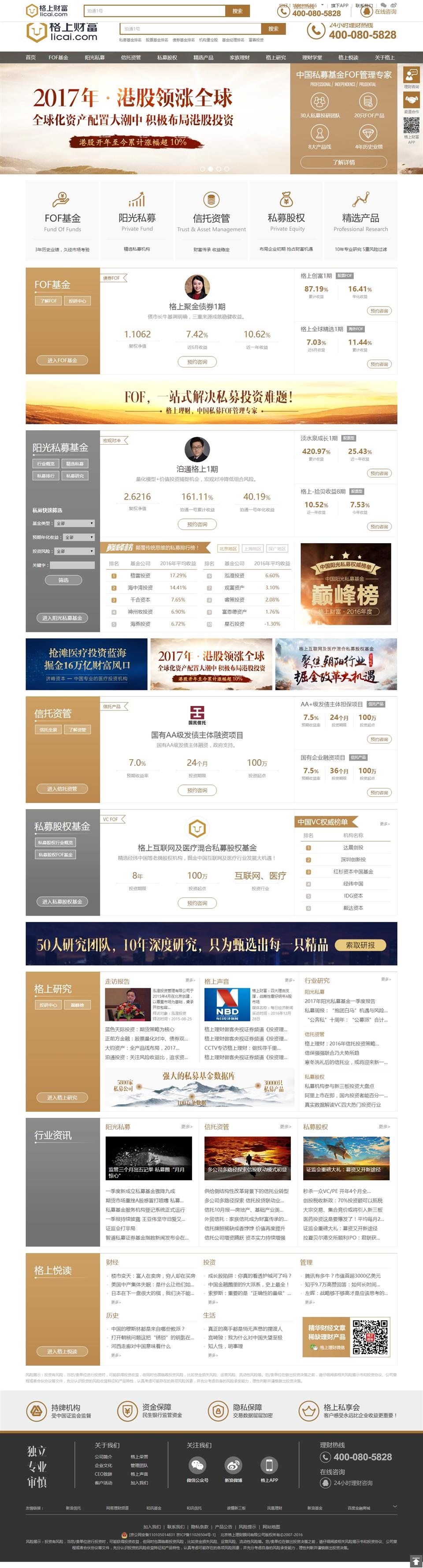 北京格上理財顧問有限公司成立于2007年,經(jīng)過十年發(fā)展,格上財富已經(jīng)成為為中國高凈值個人及機構投資者提供一站式的資產(chǎn)配置與財富管理服務的專業(yè)機構。