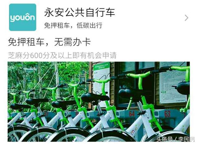 永安行與付出寶芝麻信譽(yù)達(dá)到協(xié)作,用戶在綁定身份信息后,只需芝麻信譽(yù)分超越600,就可以“無(wú)押金”租車。永安行的這一做法切中了同享單車押金高、管理混亂等痛點(diǎn)。